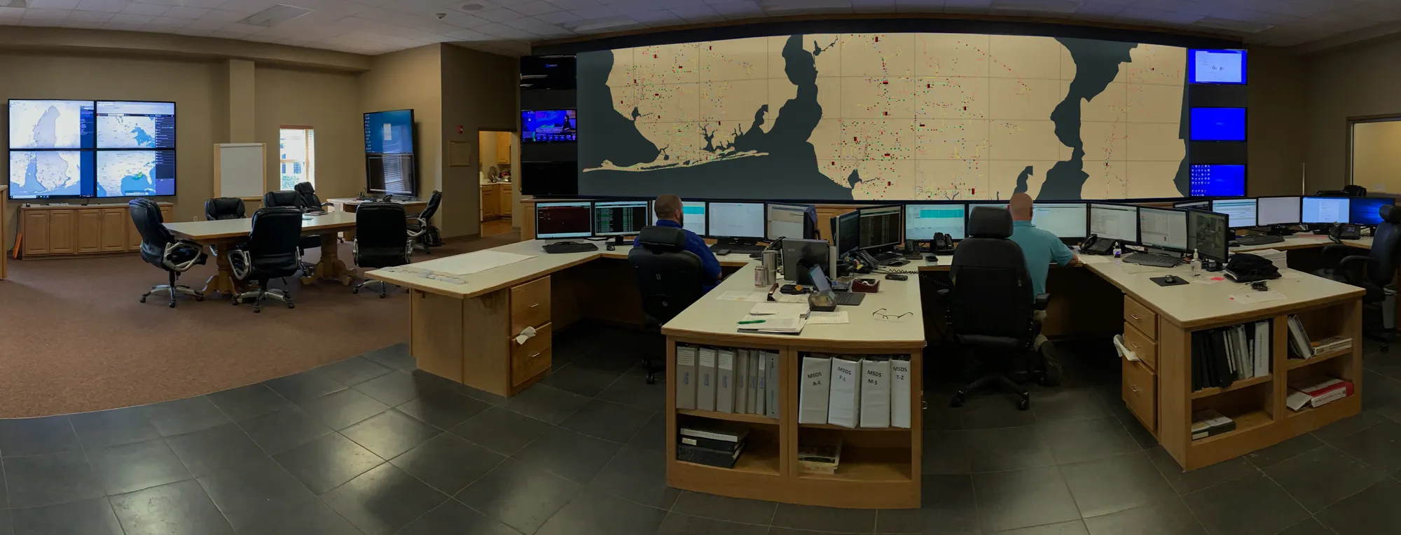 With a static, manual mapboard at the center of their control room, the co-op lacked a modern, scalable way to share operational visibility across teams. By partnering with Primate Technologies, Baldwin EMC transformed its situational awareness through a fully customized video wall and integrated display system. Today, teams across the organization, from field crews and public relations to operations staff, control room operators, district managers, and executives, are able to work with clarity, speed, and confidence during normal operations and dark sky events alike.